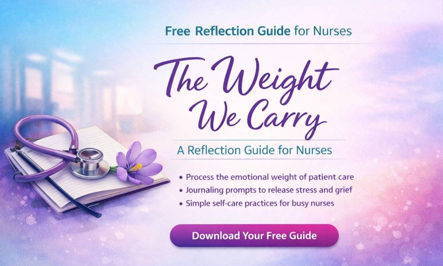 Processing the emotional weight of patient care is something nurses are rarely taught how to do. This short reflection guide was created to help you pause, process , and release some of the invisible weight we carry